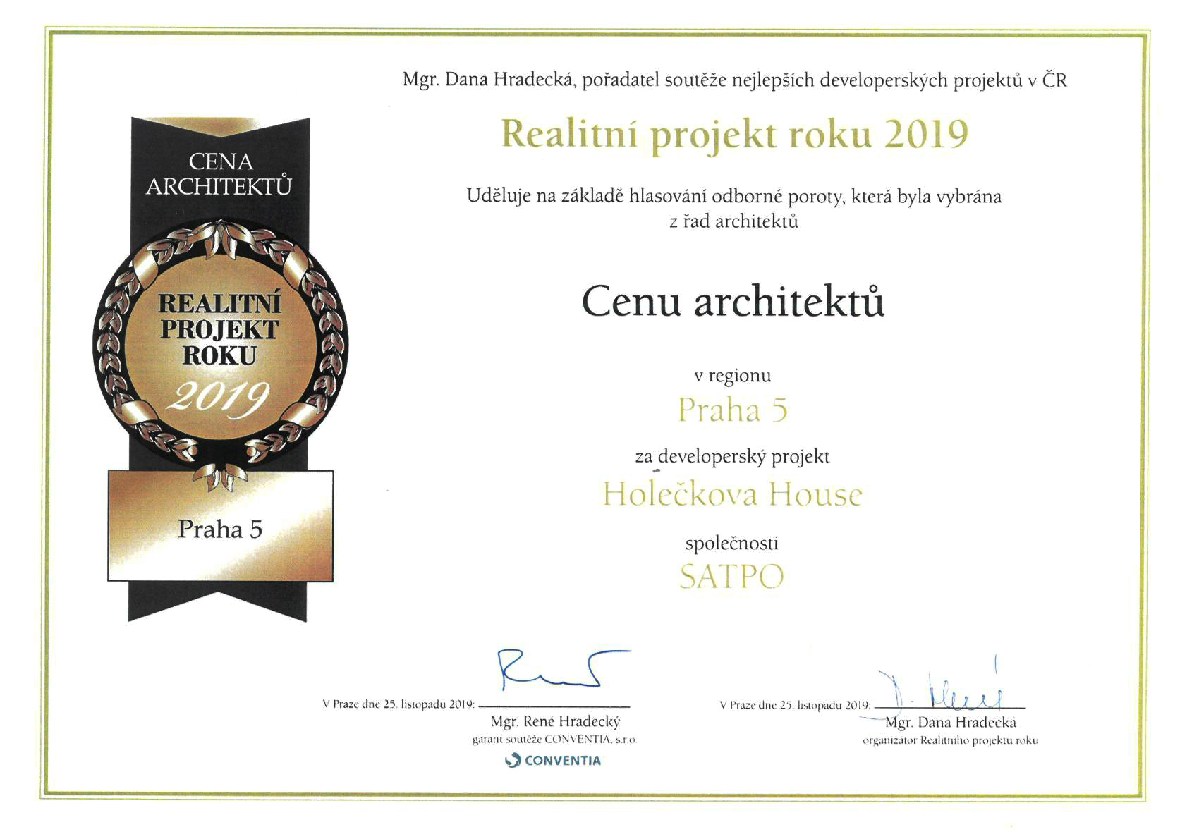The premium chamber project Holečkova House was nominated among the projects competing in the important developer competition Real Estate Project of the Year