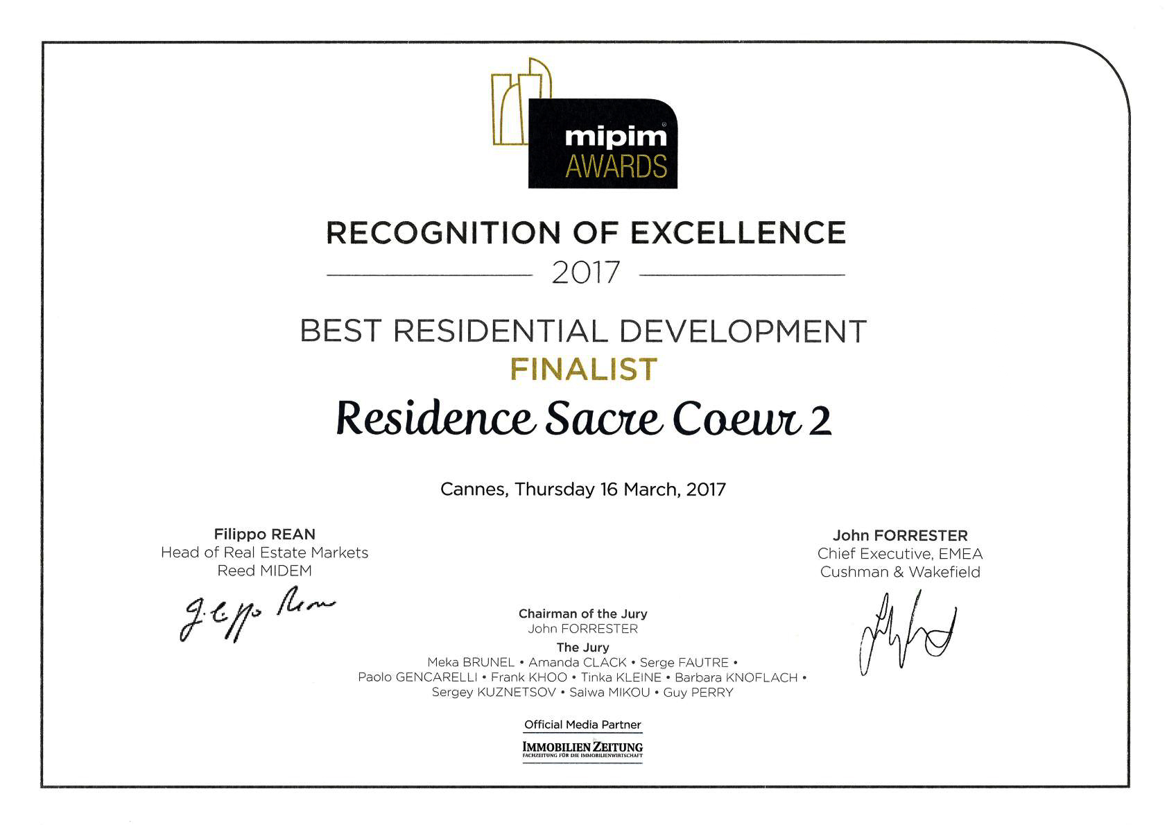 The Rezidence Sacre Coeur 2 has competed in its category with a development project from Germany (winning), Brazil and France. If you are interested in how our project competed at the competition, take a look at the highest awarded projects of 2017.
