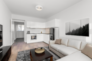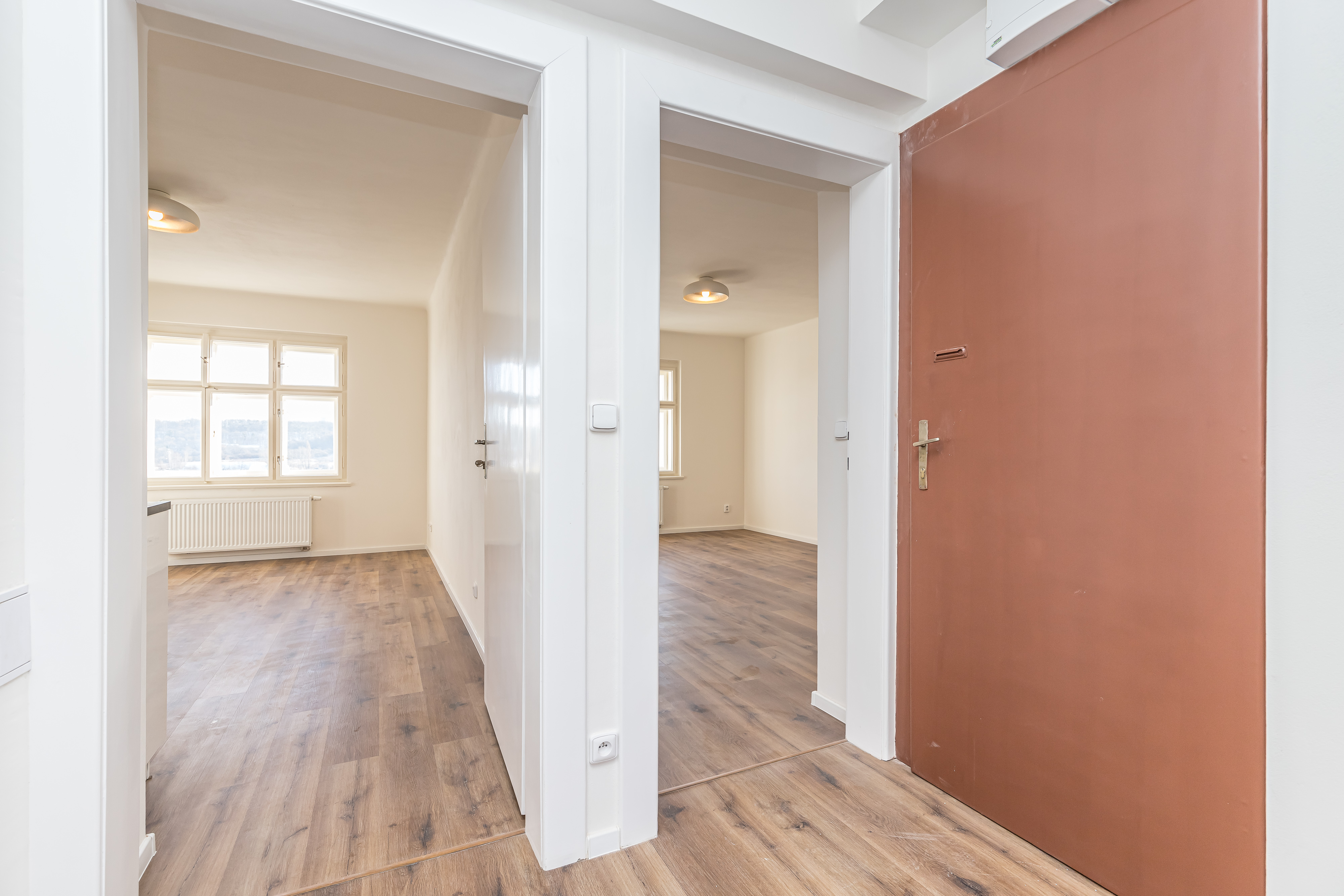 For immediate move-in, we offer a 2-room apartment on the top floor of a villa with access to a private garden. Enjoy stunning views in a location on the border of Krč and Braník, with all the advantages of city living.