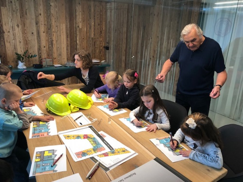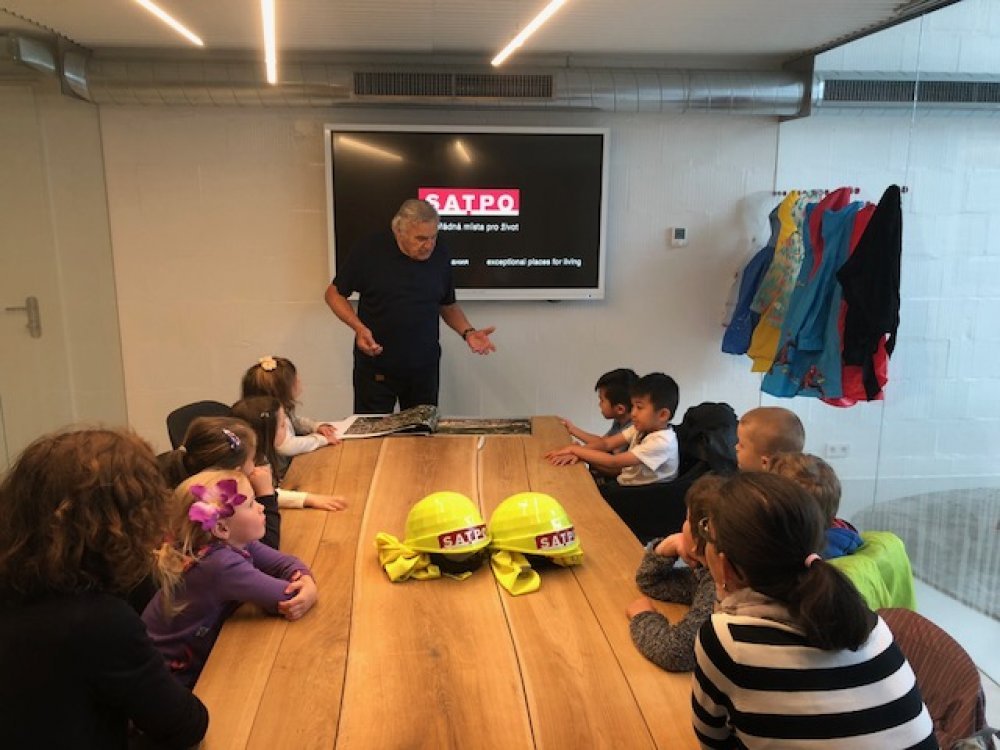 At SATPO, we had special visit from nursery school Španělská. The aim of the event was to familiarize children aged 5-6 with the exceptional construction of the Sacre Coeur 2 Residence and the process of planning the entire project, from architect drawing, over laying the foundation stone to the construction itself.