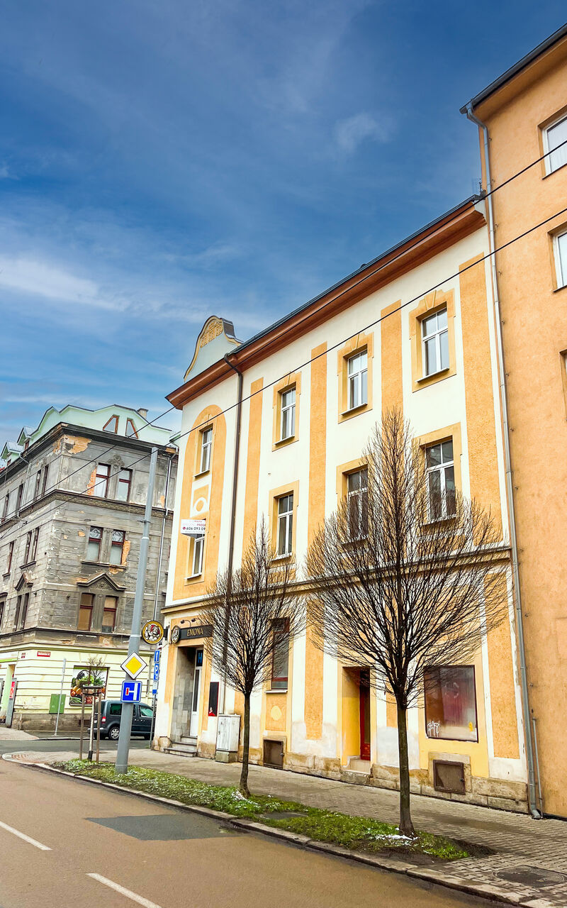 The apartment building, where we offer 12 units for sale, is located in the wider center of Pilsen on the corner of Božkovská and Sladkovského streets.
