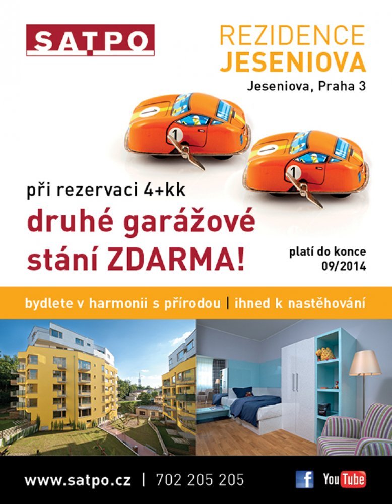 When booking any apartment 4 + kitchinette in JESENIOVA Residence you will get a second garage for FREE!