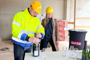 All esteemed guests were welcomed by a short speech by the project director of SATPO, Ing. Jiří Dvořák, who not only thanked for the excellent cooperation so far, but also mentioned the difficult time in terms of construction management, orders and delivery of materials. Subsequently, Mr. Petr Šimon, Chairman of the Board of Directors of the construction company Hinton, a.s.