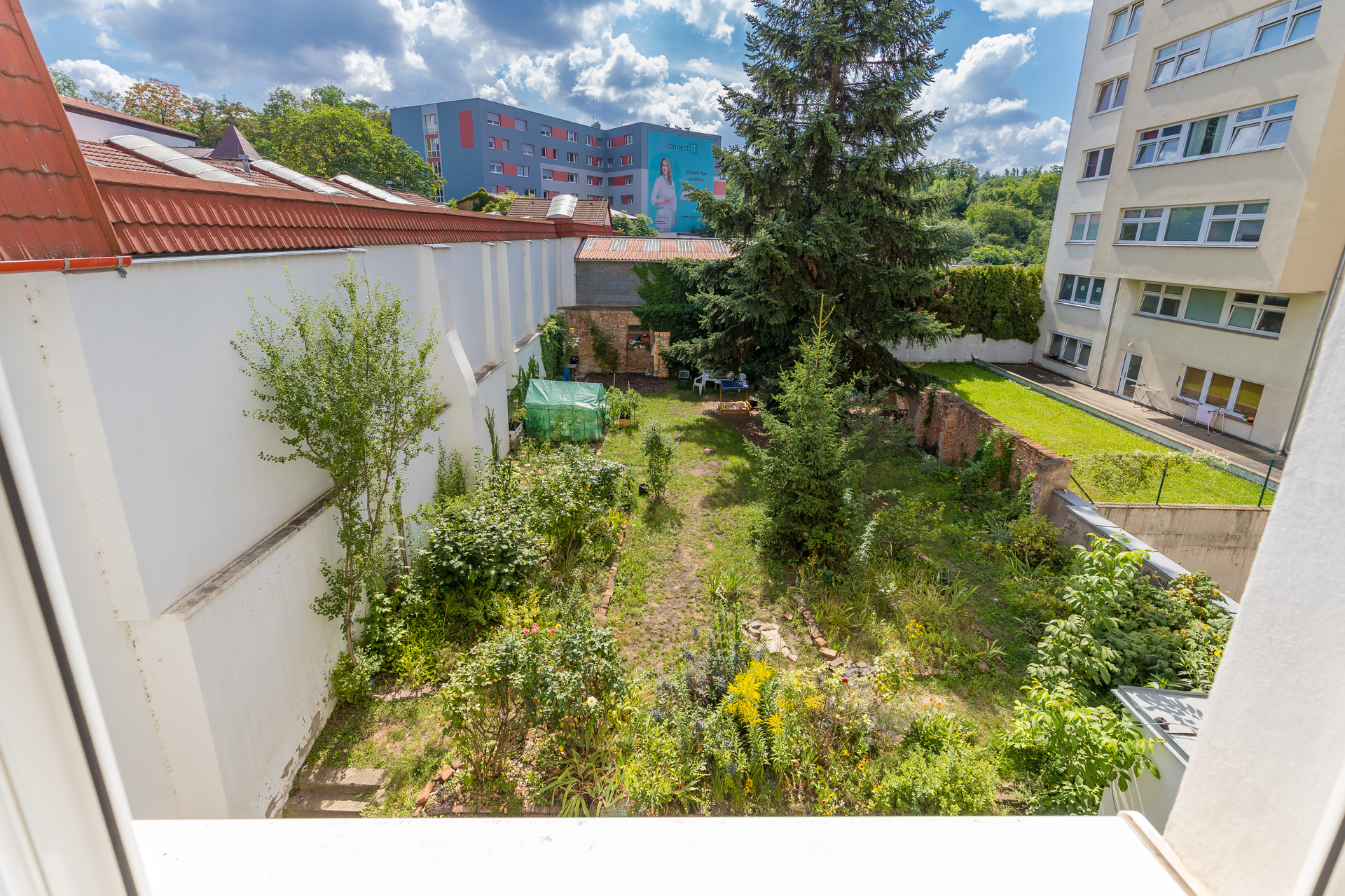 The brick house with six above-ground and one underground floor offers not only comfort, but also a high standard of living with a unique space for large families. In addition, all apartment units have their own cellar cubicle. The common areas of the house are carefully maintained and due care was taken during the reconstruction. The house is equipped with an elevator. For the residents of the house, there is a common garden behind the house with a size of over 300 m², which can be used for moments of relaxation and rest or for playing with children.