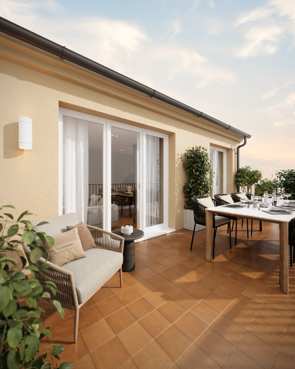 For everyday rest and relaxation or just pleasant moments spent with family and friends, Residence PO7SKÁ offers a private wellness area with sauna, relaxation room and a small gym in the basement of the house and equipped common courtyard with greenery.