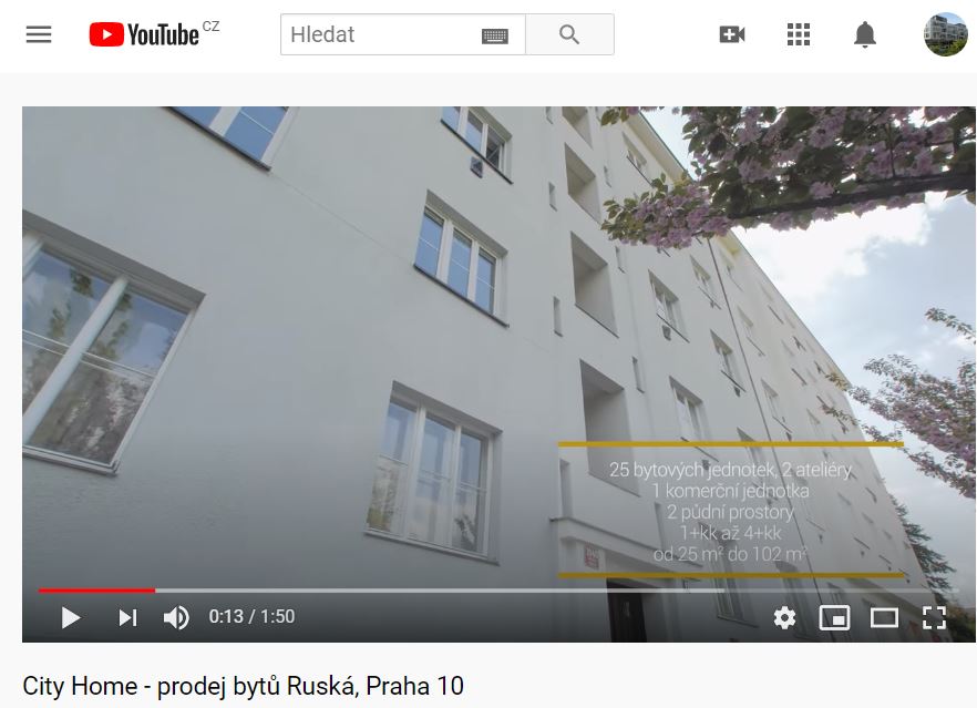 As part of improving client care, it is possible to watch a video tour of the apartments in the Ruská and Nad Malým Mýtem apartment buildings in Prague. You can get acquainted with our offer in the comfort of your office or home