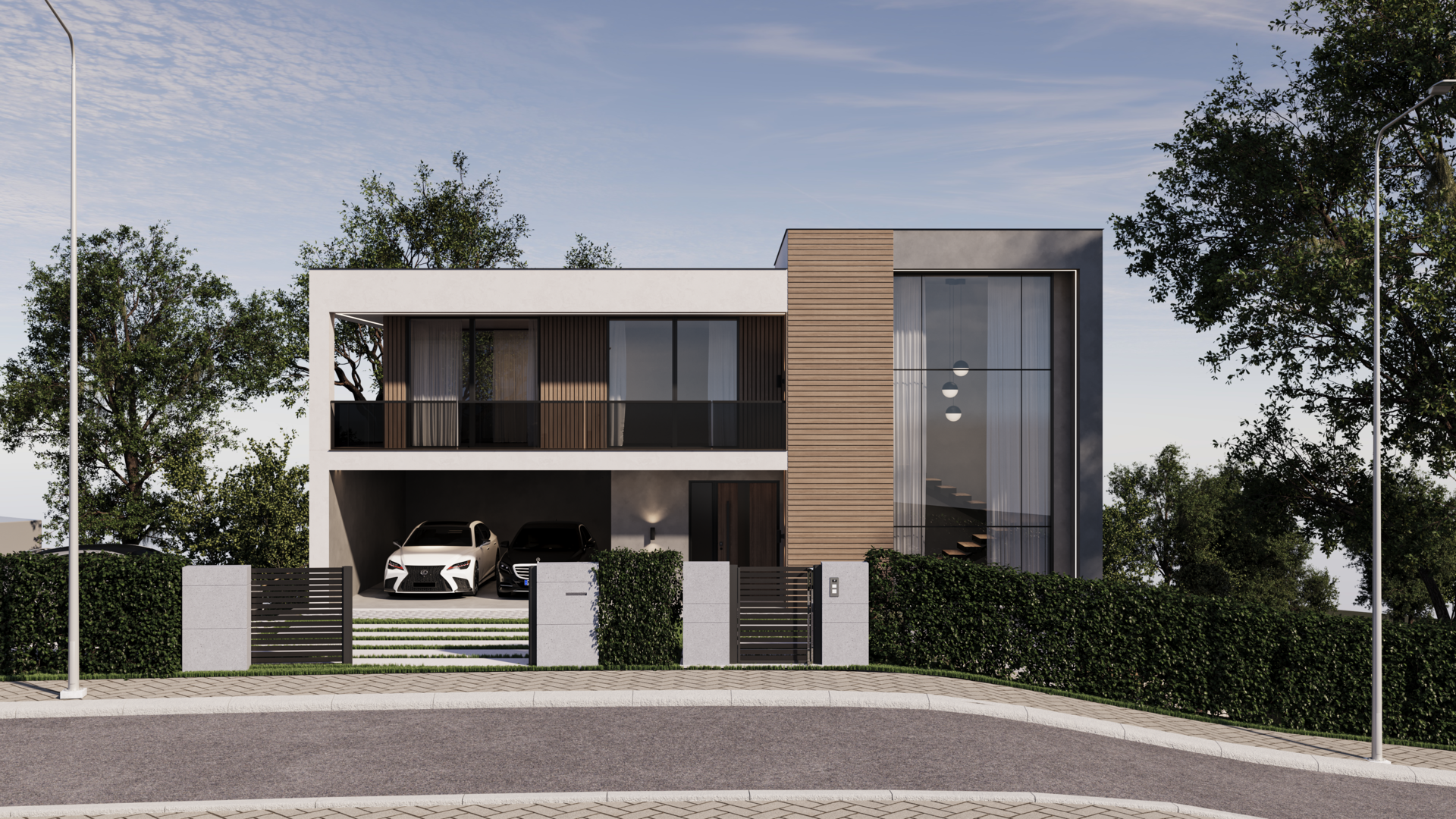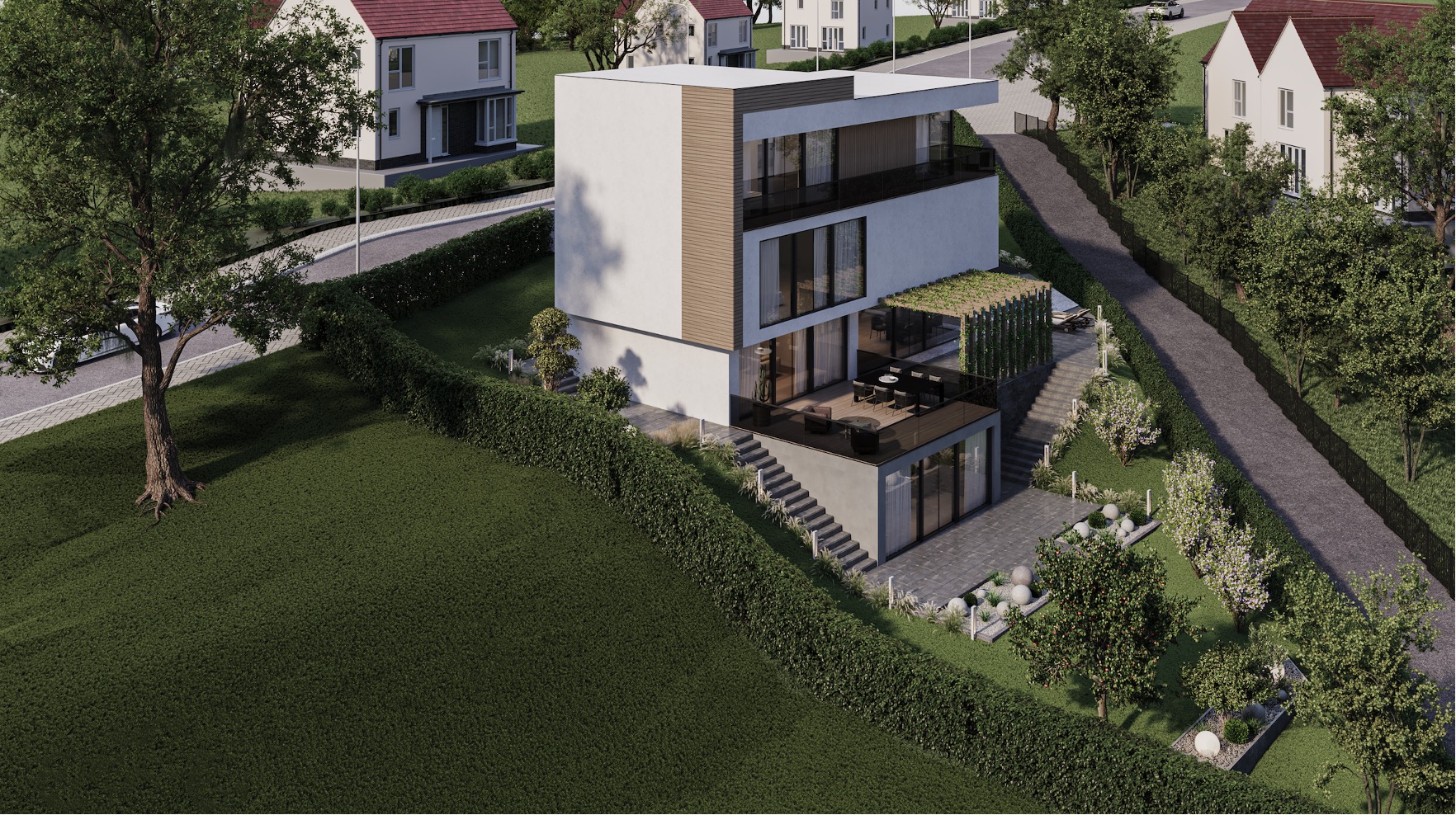 ideová studie domu z pěší bezejmenné komunikace