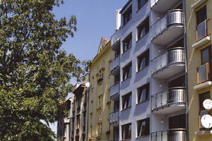 The nine-storey house was built in the gap between the existing historic buildings in Lumírova Street. It has thirteen luxury apartments and two duplexes measuring from 99 m2 to 128 m2.