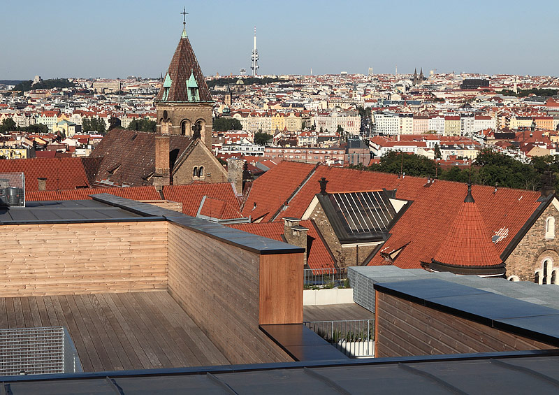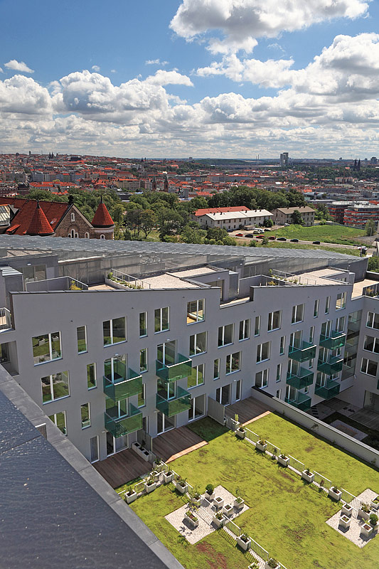 The Sacre Coeur Residence offers exceptional modern architecture set in the original historic buildings of Holečkova and Švédská Streets. The outer shell of the building is sensitively designed so as not to disturb the charm of the neighboring Benedictine monastery. The height of the building is adapted to the surrounding buildings. The internal layout of the building consists of five communication cores with three entrances from the street and one entrance to the common underground garages.