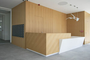The standard layout of the flats is divided into a private and living area, with sufficient storage space and easy modification to ensure wheelchair access if necessary. Selected flats include en-suite bathrooms. The flats also have individually adjustable wall-to-wall under-floor heating, access to high-speed internet, cable television, assistance buttons and potential installation of a motion sensor. All flats on the last floors have an air-conditioning unit. Each flat has a cellar and parking in the underground car park available.