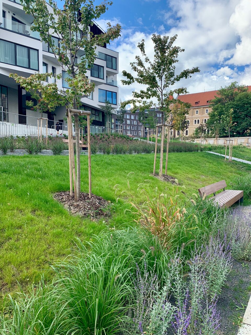 The residences are located in Prague 5 in Holečkova ulice in the Hřebenky residential district, next to Kinsky Gardens, a few minutes walk from Petřinský vrch, Malá strana and Prague castle. You can read your morning newspaper with a cup of espresso just a few steps away at the nearby coffee shop, then cross the bridge to reach the National Theatre a short distance away from Charles Bridge. During the day you can relax in the nearby Kinsky Gardens or at Mozart’s refuge on Bertramka. The Nový Smíchov shopping and entertainment centre will provide you with any other services you need.