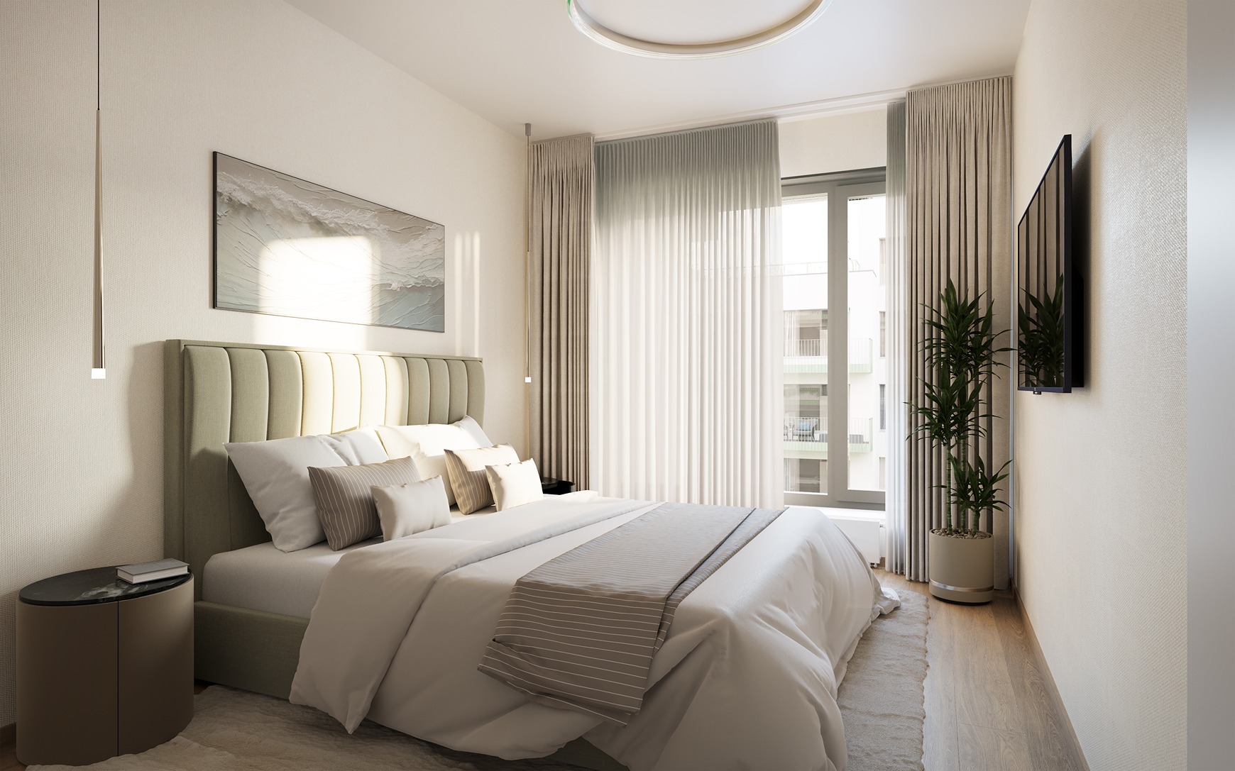 The architectural design balances elegance with functionality: the underground levels provide a solid foundation for dynamically shaped upper floors with recessed terraces, emphasizing the building’s exclusive character.