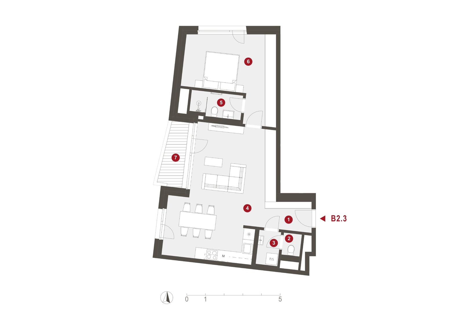 | 03 Hall WC | 2.3 m2 |