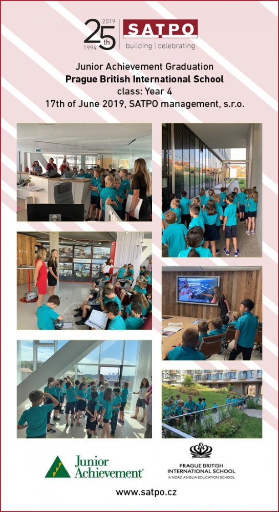 I v letošním roce společnost SATPO opět podpořila aktivní účastí a finanční podporou finanční vzdělání u dětí prvního stupně. Vzdělávací program Junior Achivement s tématem Our City proběhl na mezinárodní škole Parklane a Prague British International School v Praze. Děti kromě výuky ze světa podnikání a financí absolvovaly slavnostní graduaci spojenou s prohlídkou kanceláře společnosti SATPO a rezidenčního projektu Rezidence Sacre Coeur 2. Váženým hostem byl ředitel JA Czech, pan Martin Smrž, který pronesl i slavnostní proslov v rámci předávání diplomů Mladý ekonom.