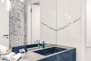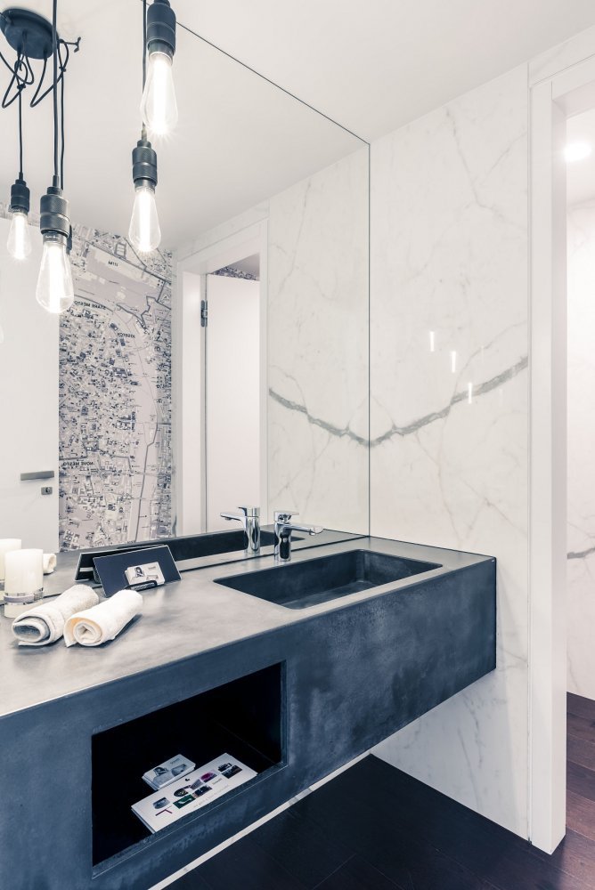 "Mým cílem bylo vytvořit interiér který je ležérní a zároveň luxusní. Koncept vzorového loftu jsem postavila na kontrastech. Kontrast téměř černé dřevěné podlahy a bílých zdí. Kontrast přiznaných betonových konstrukčních prvků a lesklého mramoru. Černá a bílá...lesk a mat...prolínají se celým prostorem a tvoří základ který si budoucí majitel dotvoří podle svých představ", říká autorka celého konceptu prémiového loftu.