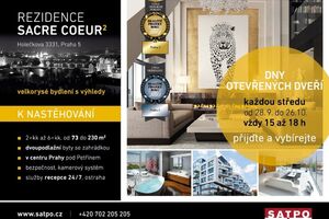 Přijměte, prosím, naše pozvání na prohlídku prémiových bytů vždy ve středu od 15.00 do 18 hodin do Rezidenci SACRE COEUR2 v prémiové pražské rezidenční čtvrti pod Petřínem, pár kroků od Malé Strany a obchodního centra Nový Smíchov. Seznámíme Vás s opravdovým „ pokladem mezi byty“. Byty Vás okouzlí vysokým standardem, velkorysým prostorem a pěknými výhledy na centrum Prahy nebo Bertramku.