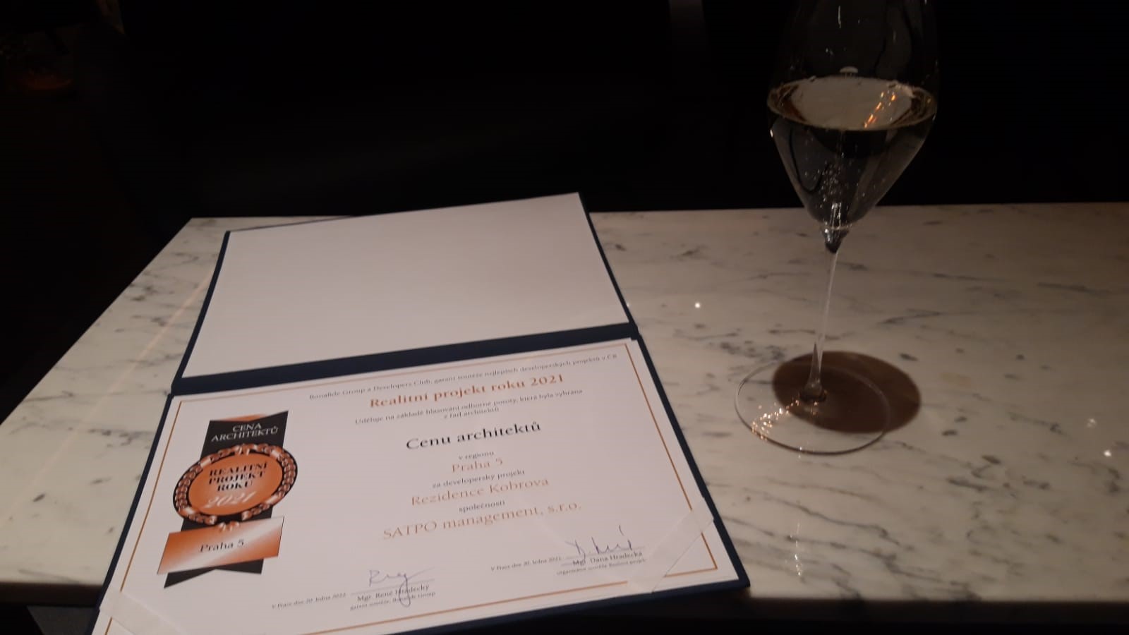 Dne 25.1.2022 byly slavnostně vyhlášeny výsledky soutěže „Realitní projekt roku 2021“ v jednotlivých kategoriích. Společnost SATPO získala za přihlášený developerský projekt Rezidence Kobrova CENU ARCHITEKTŮ v regionu Praha 5.