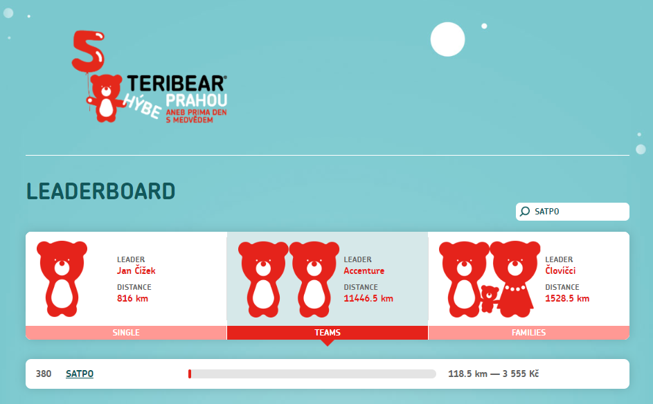 Od 5.9. do 14.9.2019 proběhla na pražském Vítkově dobročinná akce "Teribear hýbe Prahou", které jsem se zúčastnili a naběhanými kilometry tak podpořili projekt TERIBEAR, jež pomáhá dětem vyrůstajícím v náhradní rodinné péči, zejména pěstounské péči, ale také těm, kterým hrozí odebrání z rodiny do dětského domova.