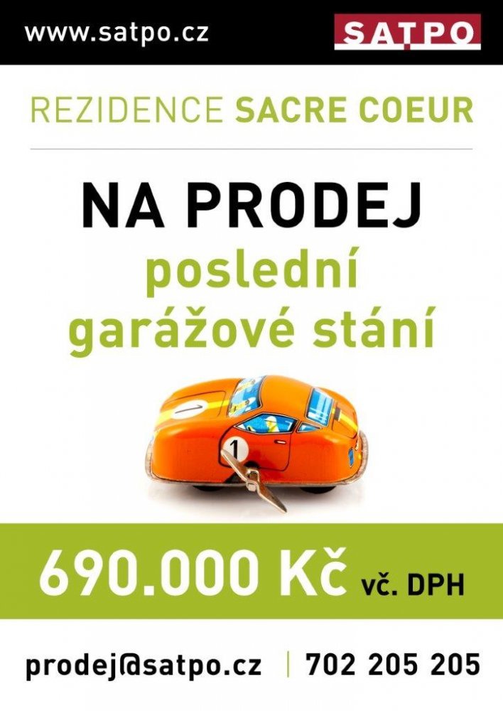 Společnost SATPO prodala všechny byty v Rezidenci Sacre Coeur a v nabídce zbývá pouze poslední 1 x garážové stání pro automobil a 2 x garážová stání pro motocykly. Poslední dvě bytové jednotky 2+kk nabízíme od majitele v kategorii bytů na satpo-broker.cz .