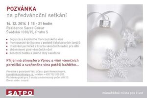Společnost SATPO uspořádala dne 16. prosince 2014 předvánoční setkání v Rezidenci Sacre Coeur, kde nejen rezidenti, ale i významní hosté degustovali francouzská vína, čokoládové lanýže a vánoční delikatesy. Vůně svařeného vína a punče, stejně jako decentní hudba v kombinaci s jemnými tóny saxofonu navodily opravdu vánoční atmosféru. Ty nejmenší potěšilo malování perníčků a tvorba vánočních ozdob po celou dobu večera.