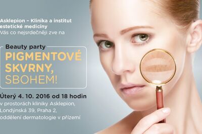 Zveme vás na Beauty Party jménem Kliniky a institutu estetické medicíny Asklepion, s poditutlem "Pigmentové skvrny, sbohem!" Těšit se můžete na nejnovější a nejspolehlivější metody v odstraňování pigmentací a dalších známek stárnutí, novinky čistě přírodní a účinné kosmetiky Phytomer a příjemnou atmosféru spojenou s občerstevním.