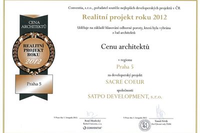 V rámci Realitního kongresu 2012 byly včera vyhlášeny výsledky soutěže „Realitní projekt roku 2012“ a společnost SATPO získala za přihlášený developerský projekt Rezidence SACRE COEUR ocenění odborné poroty CENU ARCHITEKTŮ regionu Praha 5.