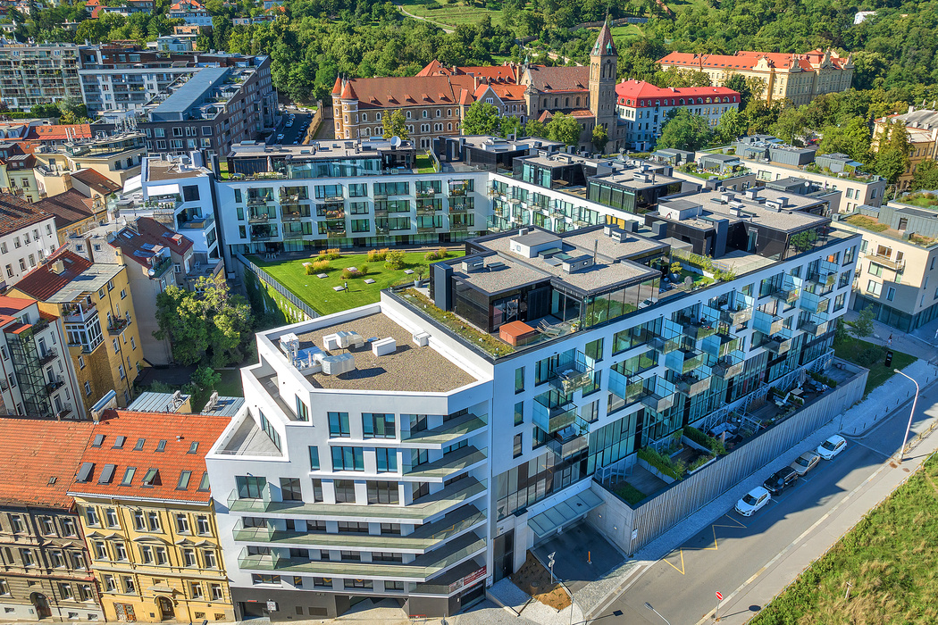 Rezidenční projekt na pražském Smíchově nabídl celkem 8 bytových jednotek s dispozicí 1+kk až 5+kk o velikosti od 40 do 213 m2 a komerční prostor.