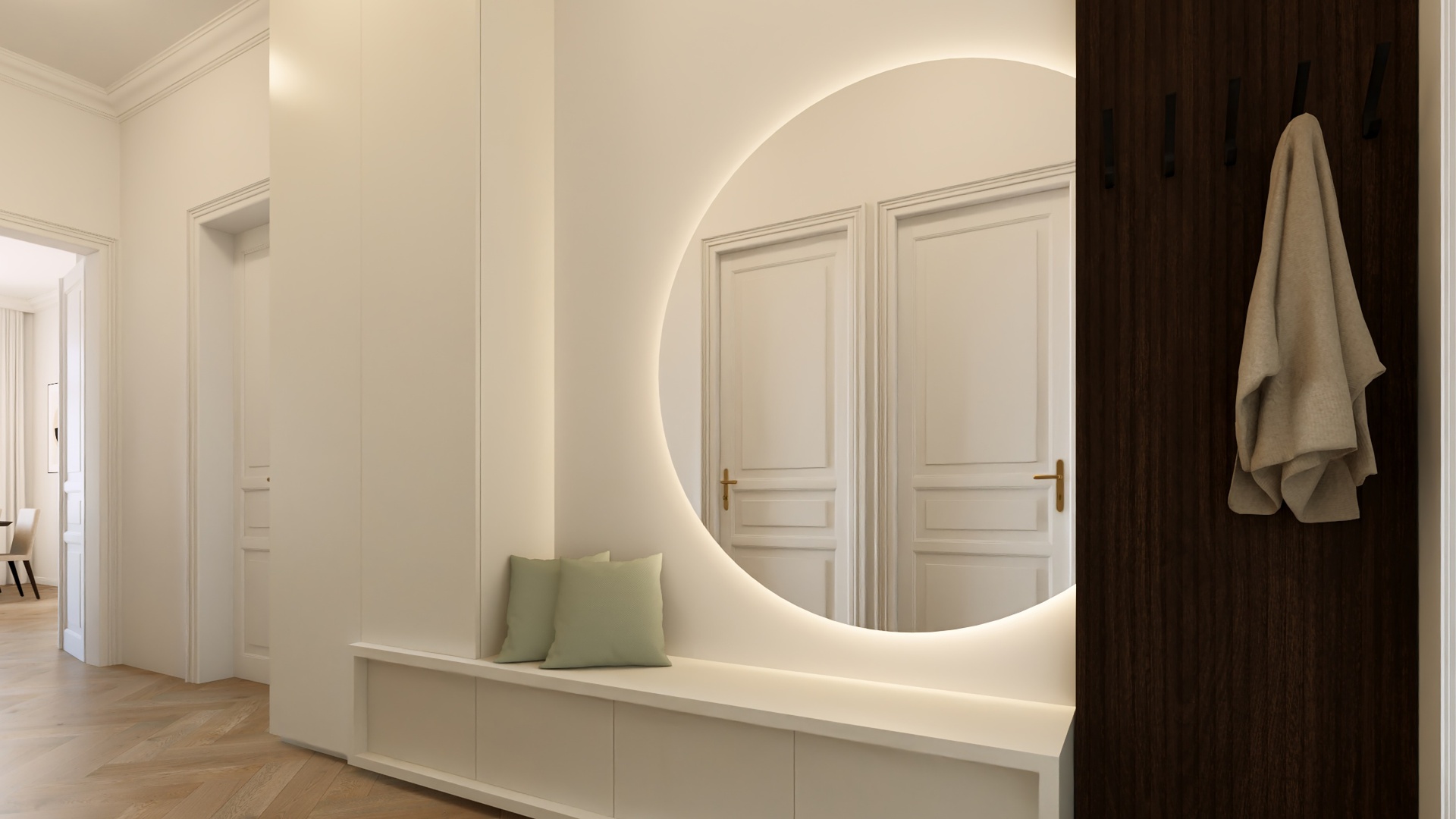 vizualizace koupelny bytu A7.6 - bílá varianta