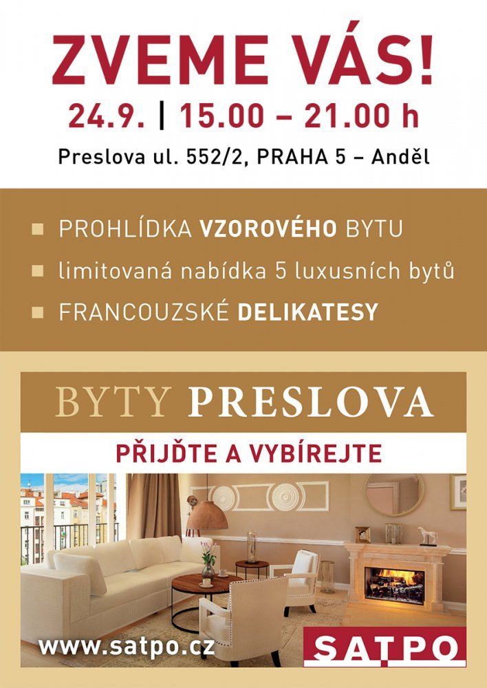 Ve čtvrtek, dne 24. 9. 2015 od 15.00 do 21.00 hodin se uskutečnila v bytovém domě Preslova na pražském Smíchově slavnostní akce pro klienty a obchodní partnery u příležitosti dokončení prvního vzorového bytu.