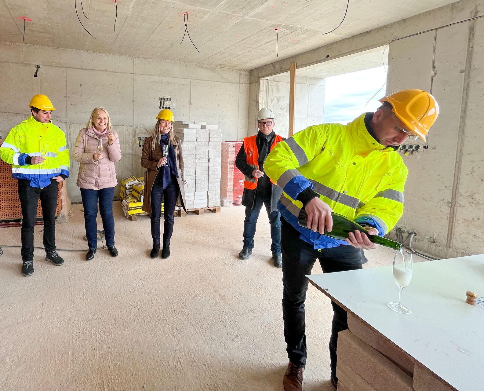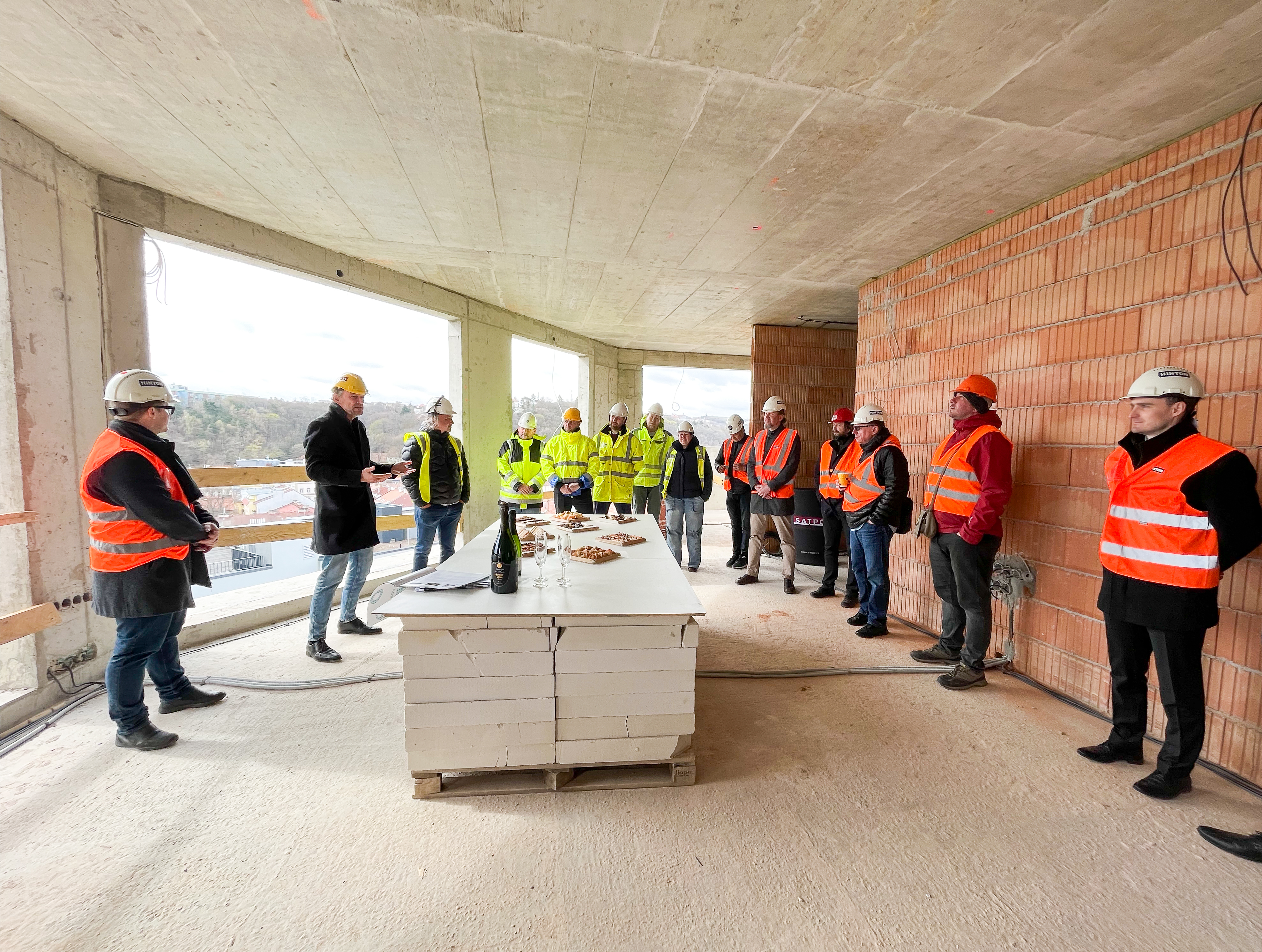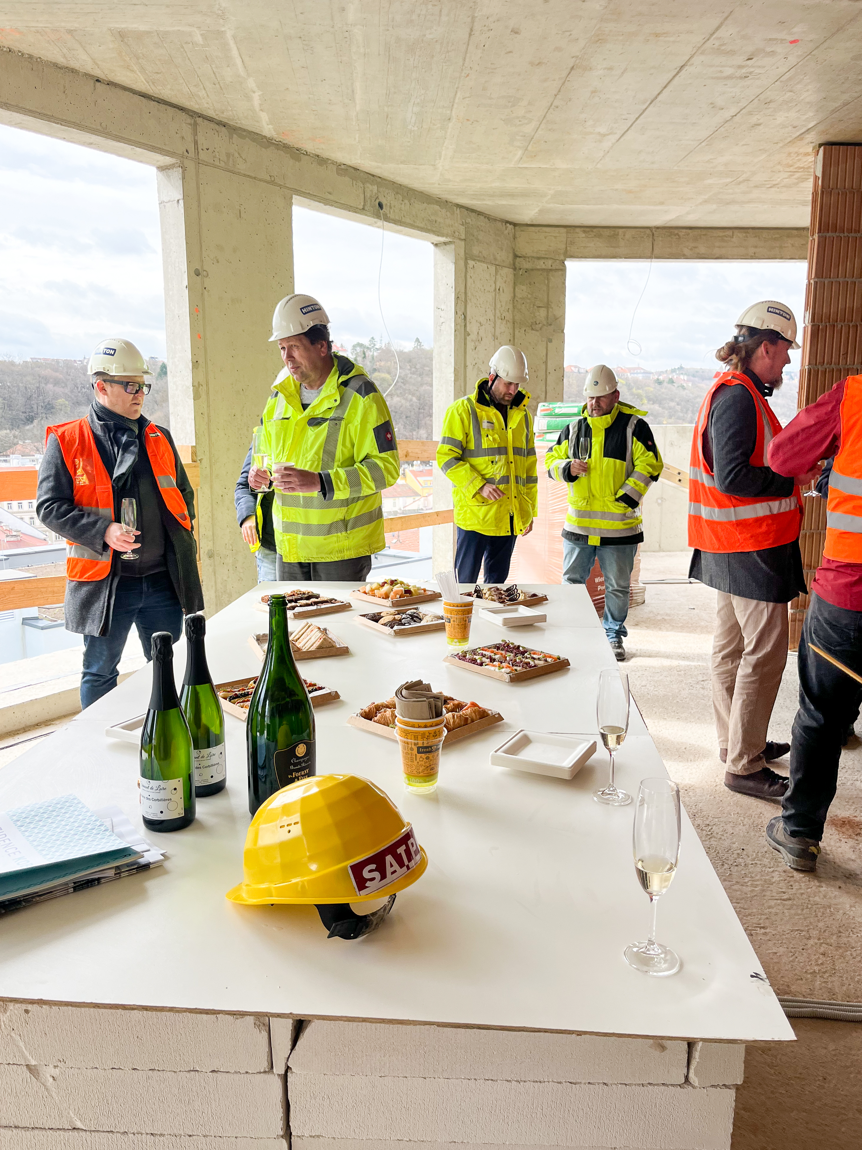 U příležitosti důležité etapy výstavby se v nejvyšším patře Rezidence Kobrova setkali zástupci stavební společnosti Hinton, a.s. , projektanti z kanceláře AED Project, a.s., vedení společnosti SATPO a nechyběla ani účast ze studia Schindler Seko Architekti, s.r.o. a financující banky obou projektů Trinity Bank, a.s.